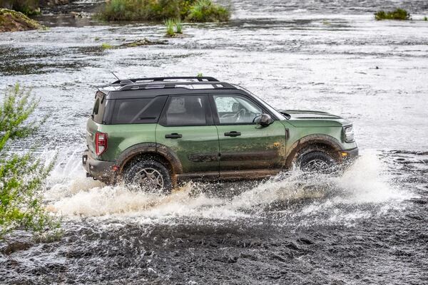 . Só atravesse trechos alagados se a água estiver até a altura do meio da roda. A F-150 e o Bronco Sport, por exemplo, podem rodar em até 60 cm de profundidade de água. Já a Ranger encara até 80 cm de profundidade e a Ranger Raptor, até 85 cm.
